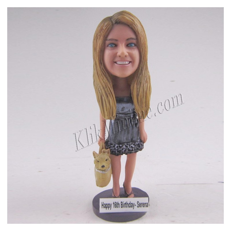 Patung karikatur 3D versi Lifestyle Wanita pecinta anjing kecil yang suka dibawa jalan pakai tas, dijamin pasti bikin dia tergila-gila dengan Kadonya